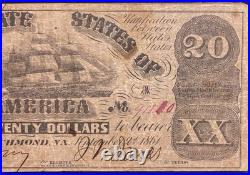 T-18 $20 1861 Confederate States Civil War Obsolete Banknote Currency, PCGS F15