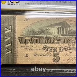T-69 1864 $5 Confederate Currency Pmg 63 Epq CIVIL War Note 63535